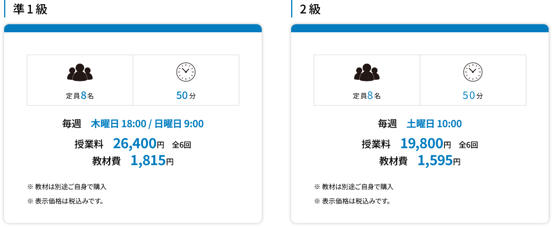 ※受講には1つ前の級に合格していることを推奨。