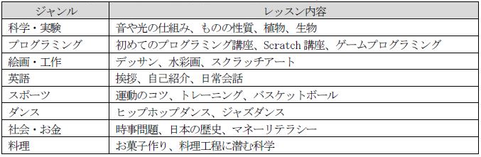 ●小学生向けプログラム「興味発見プログラム for Kids」は、英語・プログラミング・アート等の多彩なレッスンを予定