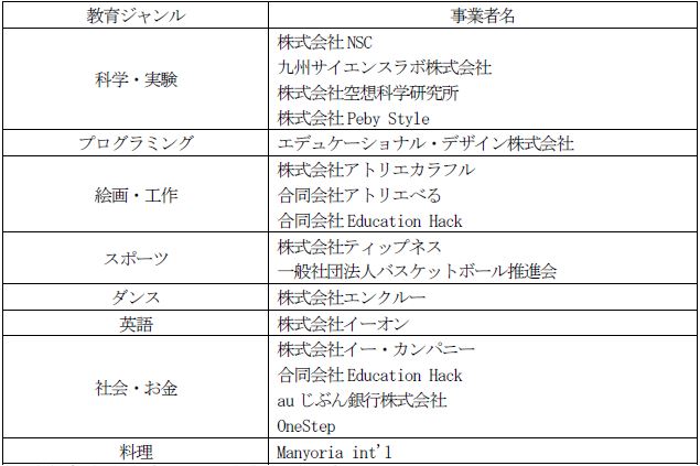 ※各教育ジャンル内の表記は企業名の五十音順です。