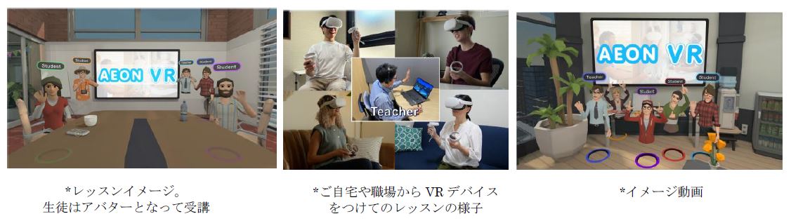 | 申込方法 | ■「AEON VR」ホームページより会員登録後、受講申込 https://www.aeonet.co.jp/online/vr/ ■受講方法 「AEON VR」会員ページにてレッスン予約後、VRデバイスにて受講 ■無料体験(8月2日より実施) 会員登録後、無料体験レッスン1回受講可 |