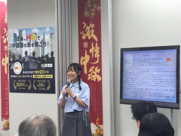 さらに、中国語スピーチコンテストに出場予定の生徒様によるスピーチ発表も行われ、ハオの講師とスタッフは感動のあまり涙を流す場面もありました。