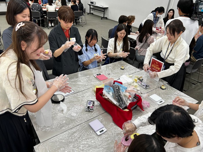 中秋節とは旧暦8月15日に行われる、秋の満月を愛でながら家族で祝う中国古来の伝統行事で、2025年の中秋節は本日10月6日(月)です。それに先立ち、中国語を学ぶことが楽しいものであるということに加え、日本と違う文化を実際に体験していただきたいという主旨のもと、月餅作り、中国茶体験、中華風マグネット飾り制作、スクラッチアートなど、多彩な文化体験を実施しました。