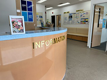 1. 名鉄知多半田駅を降り、改札を出たら左側に階段・エレベーターがございます。