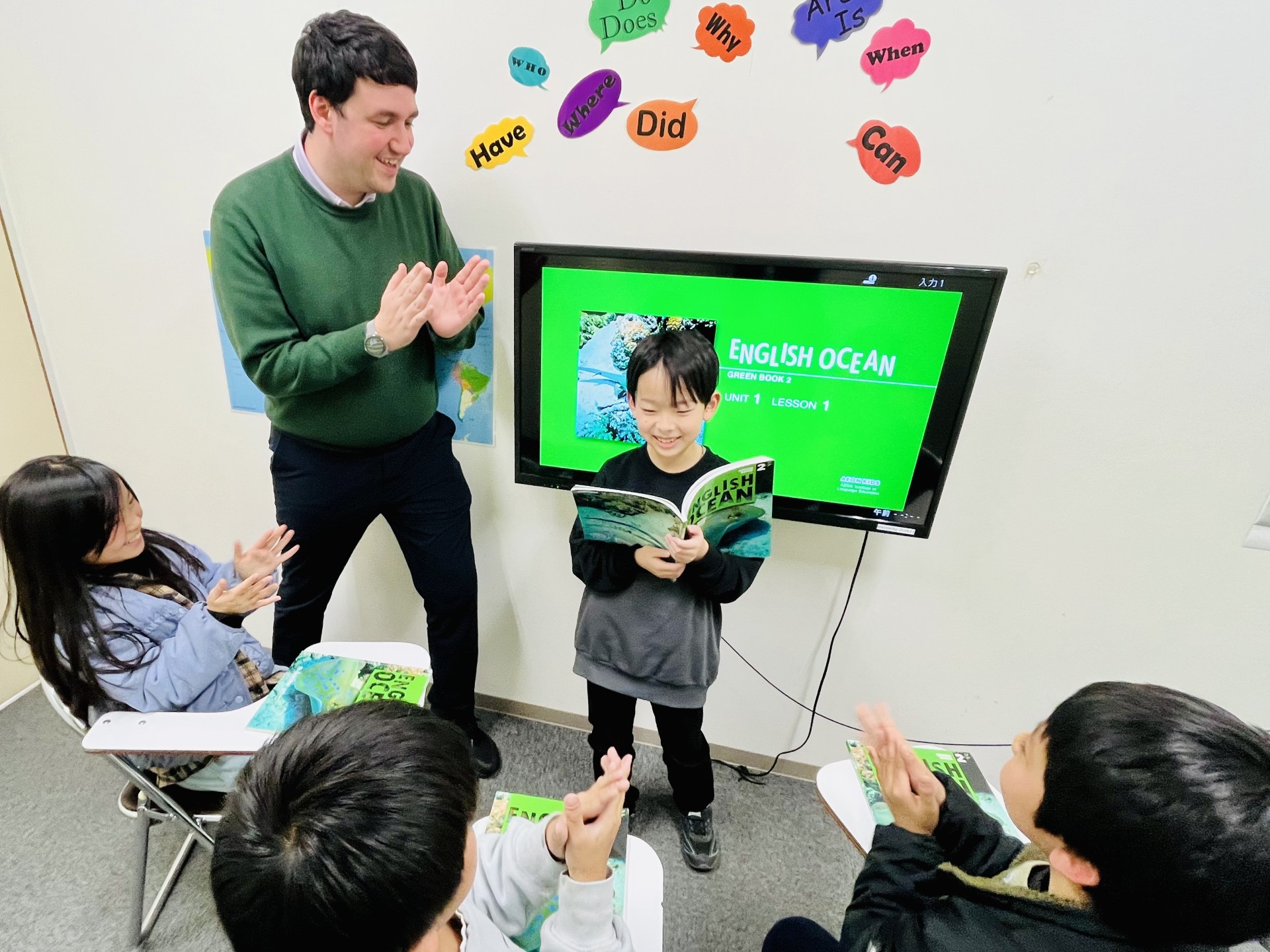 Yさん娘(小2)が楽しく通っています。先生方がとても優しく、子どものペースに合わせて丁寧に指導してくださるので安心です。レッスンはゲームや会話が多く、自然に英語に触れられる環境だと感じます。英語への苦手意識がなくなり、自宅でも簡単な単語を話すようになりました。教室の雰囲気もアットホームで、スタッフの方々の対応もいつも丁寧です。保護者へのフィードバックもしっかりしており、子どもの様子をこまめに伝えていただける点もありがたいです。全体的に雰囲気が良く、信頼できるスクールだと思います。