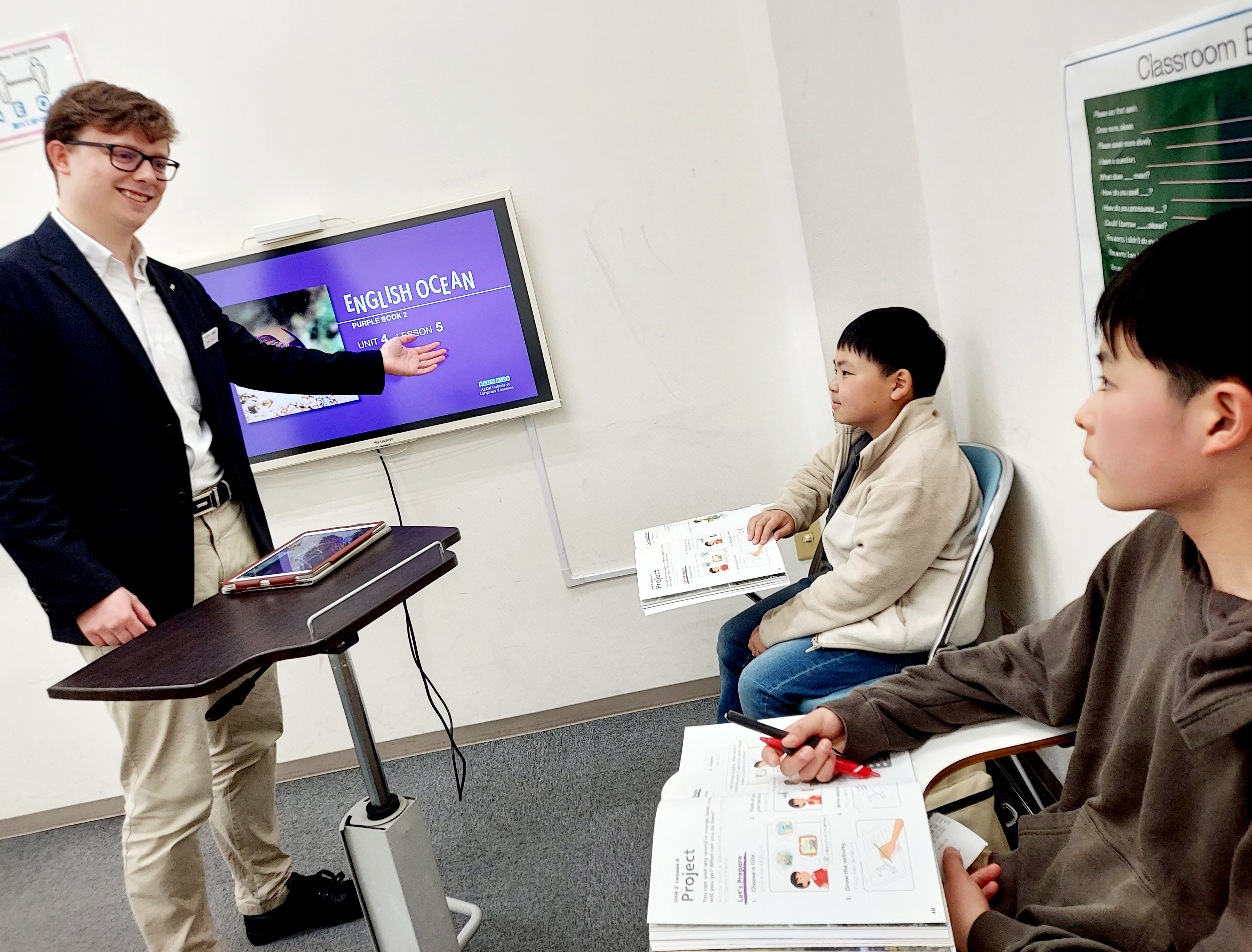 こどもブースターさん小学生に入り、将来の為に英語の必要性を感じ習い事をはじめました。AEONは教材もしっかりしており、外国人教師が少人数のグループを受け持つ事から身につくと思いました。教師も熱心で、1年に一度面接もあり、子供の勉強の様子も教えて頂けます。スクールの雰囲気も良く、レッスンで学んだ事をきちんと家でも復習出来る子は身になると思います。