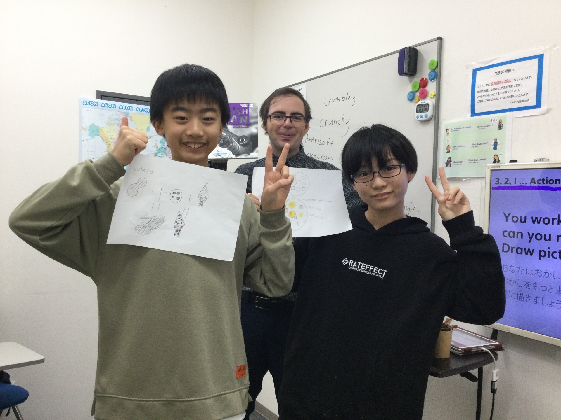英語初心者で人見知りなうえ途中入会だったので心配していましたが、初日から先生が面白くて優しい!と慣れたようで、いまでは毎週喜んで通っています。