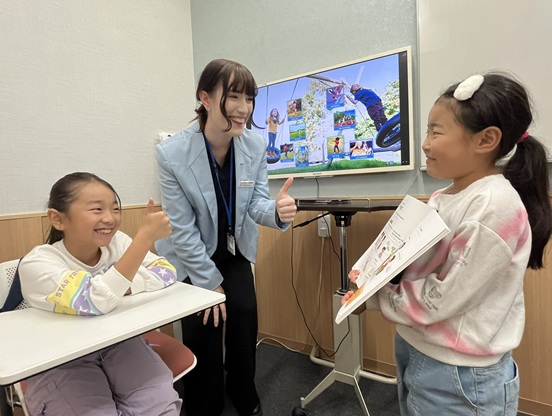 私も娘も、いつもお世話になっています。私は英語が苦手で、娘には苦手意識を持たずに楽しく習得してほしいと思い、Babyクラスから通い始めました。おかげで娘は毎回楽しそうに通っており、今では先生方に励まされながら英検にも挑戦しています。子供の性格に合わせて丁寧に教えてくださるので、とても安心してお任せできます。お友達もできて楽しそうです。また、私自身も日常会話ができるようになりたいと思い、職場で英語が必要になる場面もあることから、娘と一緒に通い始めました。自信がない私にも、できたことはしっかり褒めてくださるので、毎回モチベーションが上がります。先生方はもちろん、マネージャーさんやカウンセラーの方も皆さん優しく親しみやすい雰囲気で、親子で楽しく通えるスクールです。