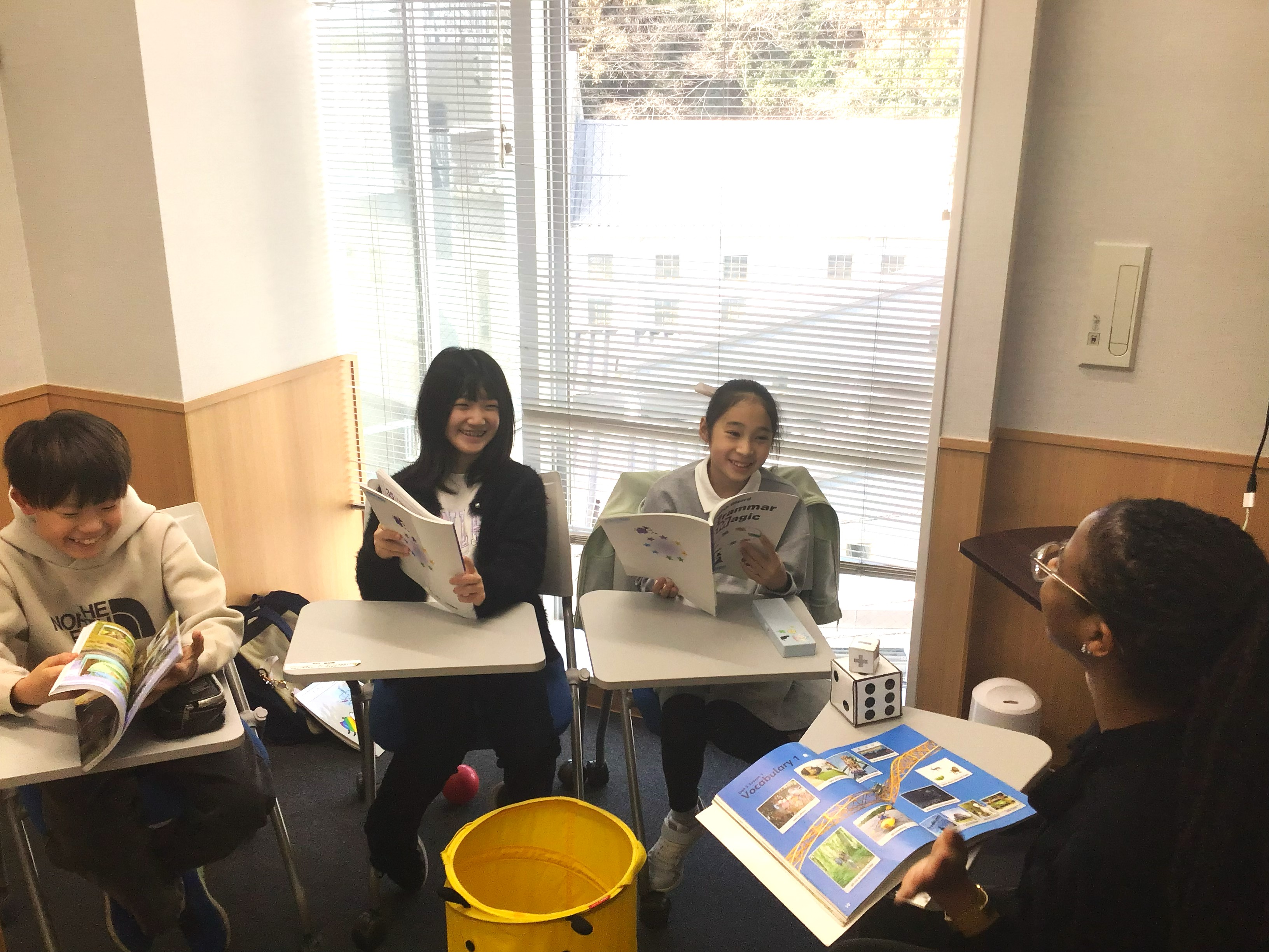 英会話の授業は、外国人の先生でゲームをしたりたのしそう。同じ歳の友達もいて、楽しく通えている。