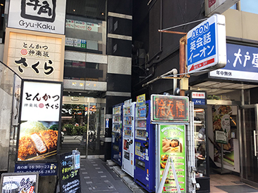 4. 大戸屋へ入る階段があるビルを通り過ぎた隣のビルにございます。(1階にとんかつ神楽坂さくら、2階に牛角が入ったビルです。)